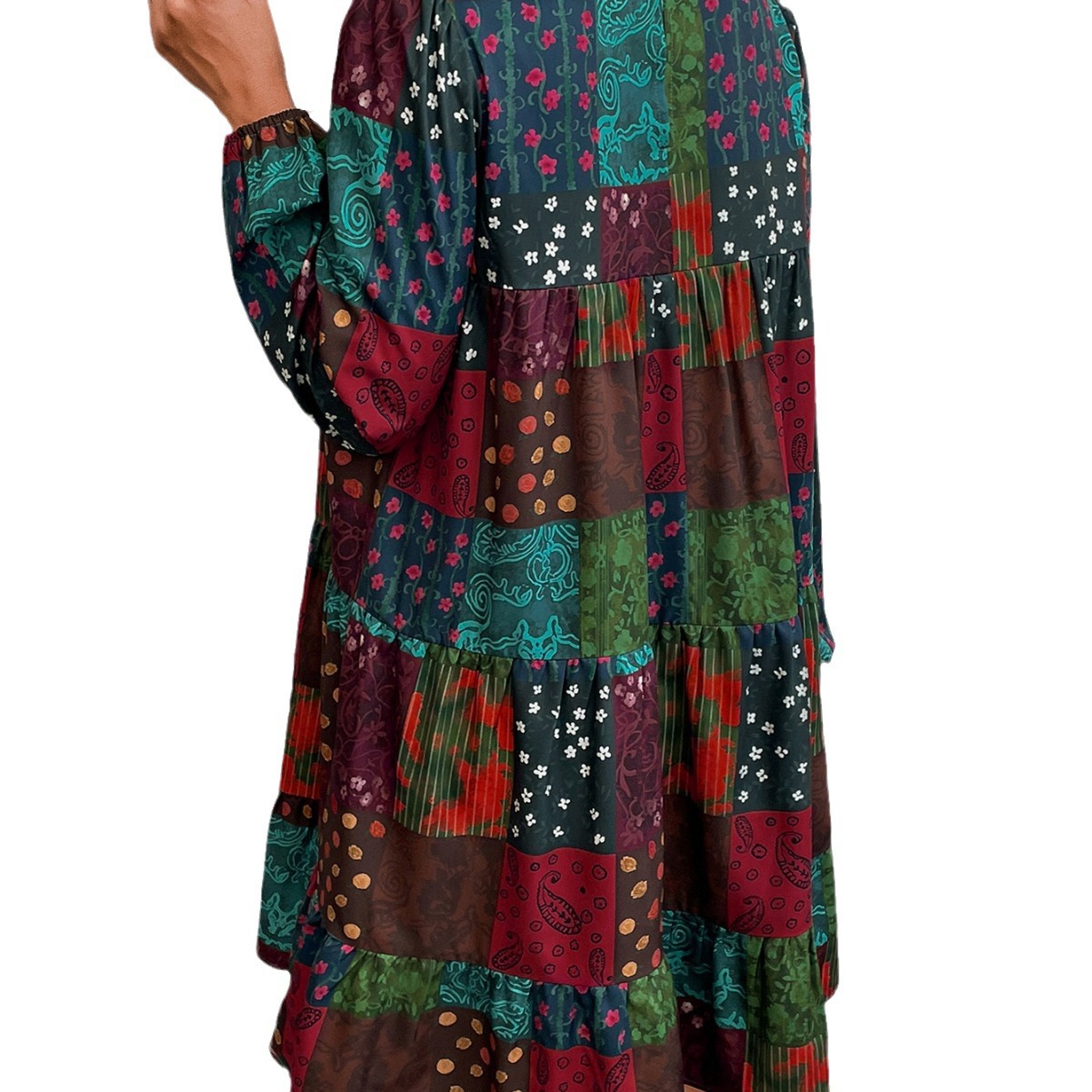 Round Neck Fashion Casual Long Sleeve A- Line Printed Dress